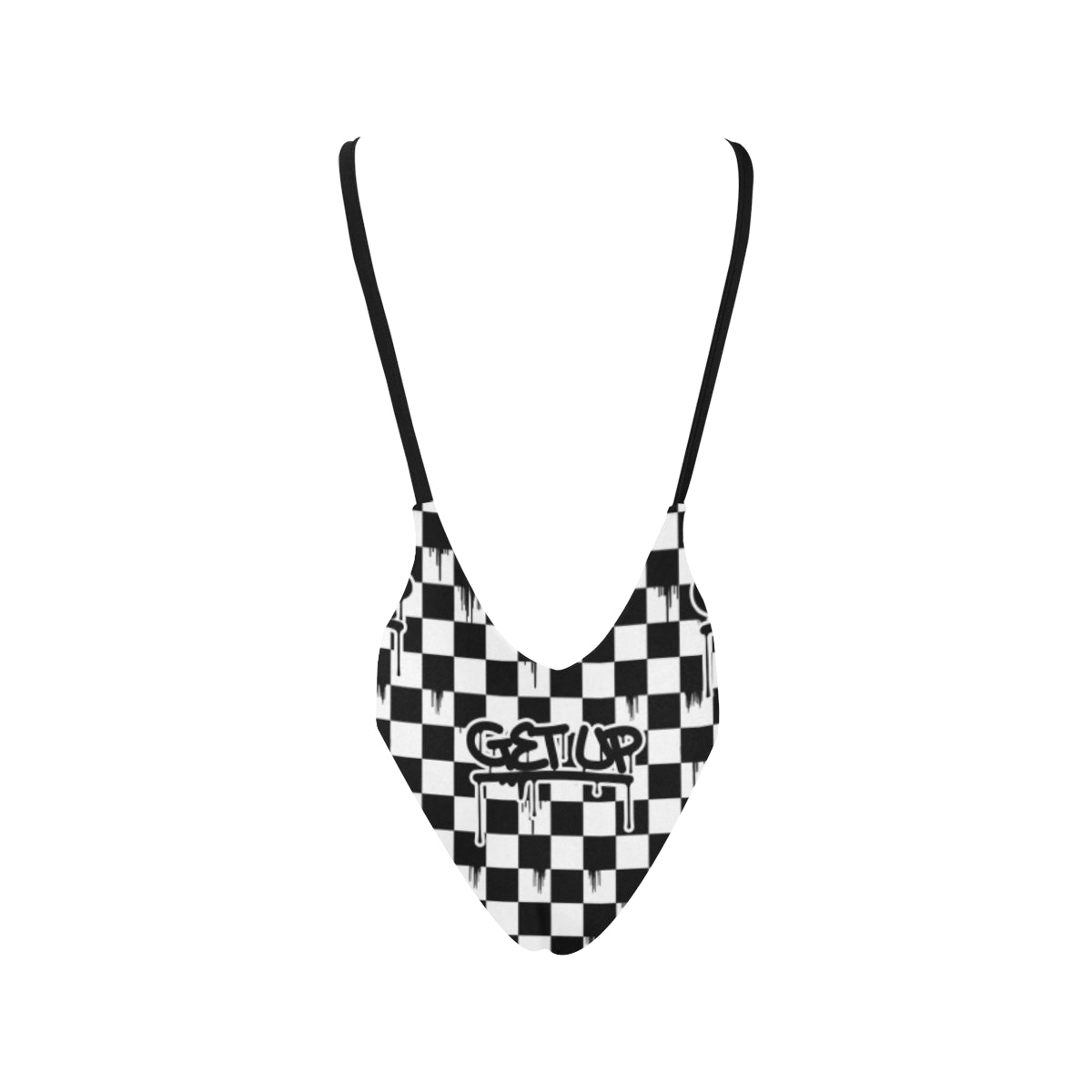 • Deep V neckline, low back and high leg.