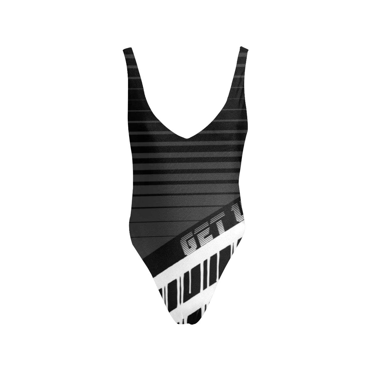 • Deep V neckline, low back and high leg.